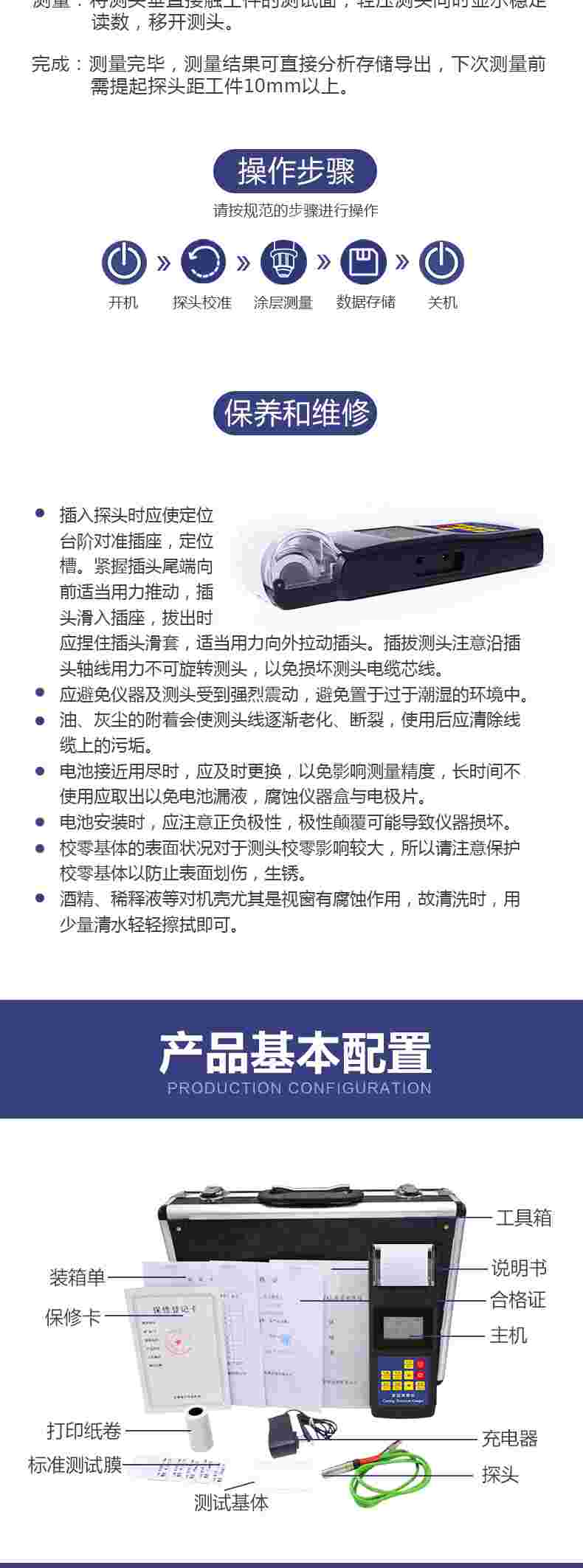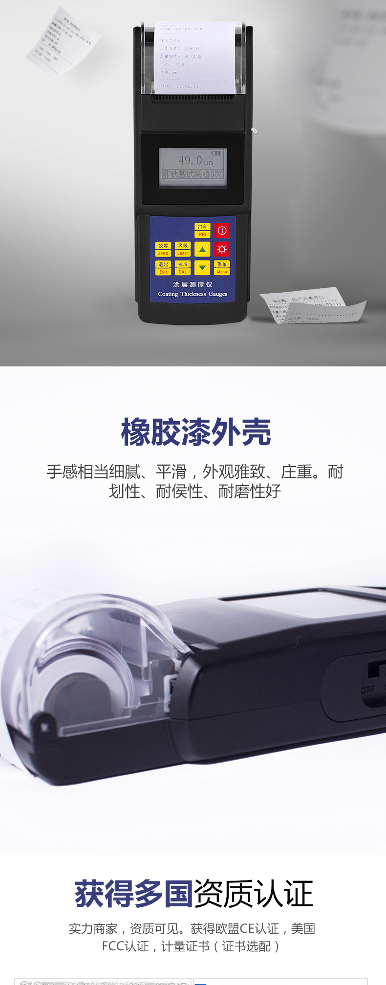 采用磁性和電渦流兩種測量方法,可檢測磁性金屬基體上非磁性覆蓋層的厚度(如鋼、鐵、合金和硬磁性鋼上的鋁、鉻、銅、鋅、錫、橡膠、油漆等),以及非磁性金屬基體上非導電的絕緣覆蓋層的厚度(如鋁、銅、鋅、錫上的橡膠、塑料、油漆、氧化膜等)。