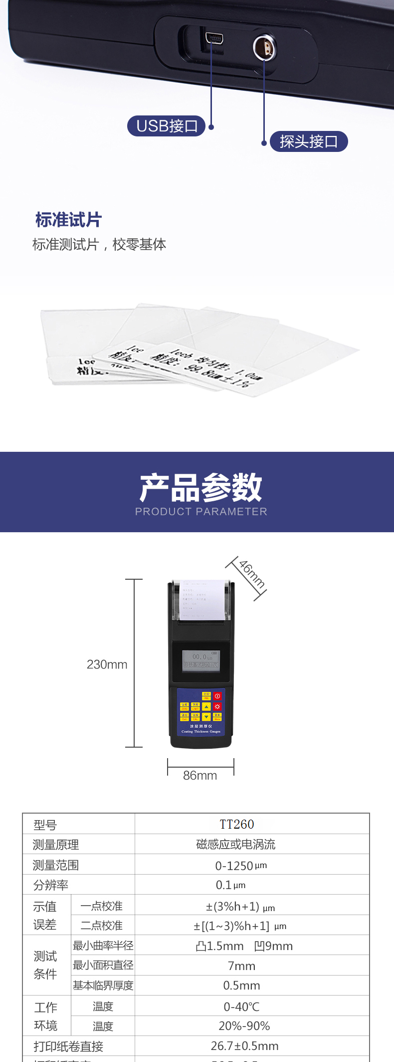 leeb里博涂層測厚儀TT260 磁性和渦流兩種測量