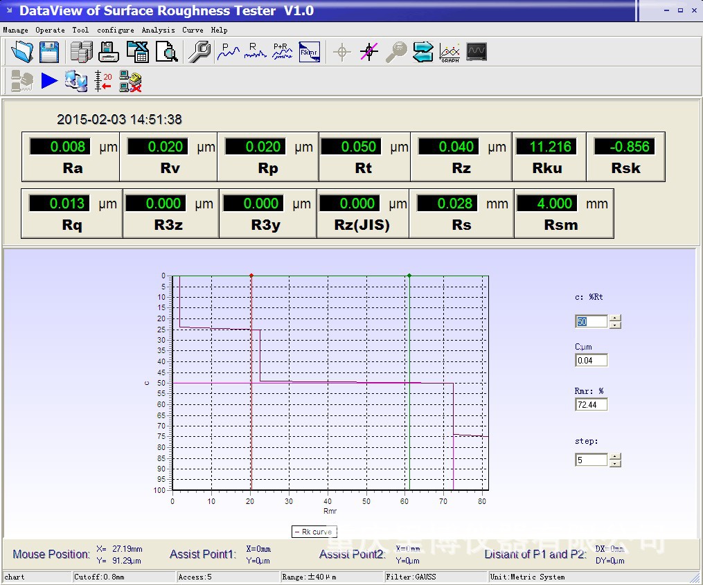 Rq,Rt,Rp,Rv,R3z,R3y,RzJIS,Rsk,Rku,Rsm,Rmr