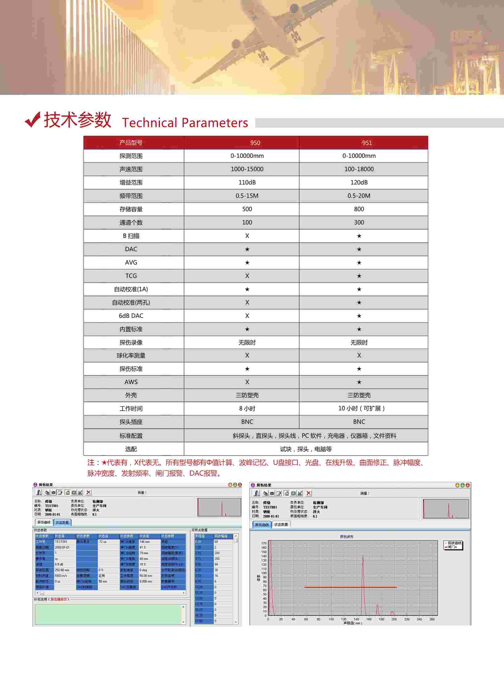 ●自動(dòng)校準(zhǔn):一鍵式自動(dòng)校準(zhǔn),操作非常便捷,自動(dòng)測(cè)試探頭的“零點(diǎn)”、“K值”、“前沿”及材料的“聲速”;