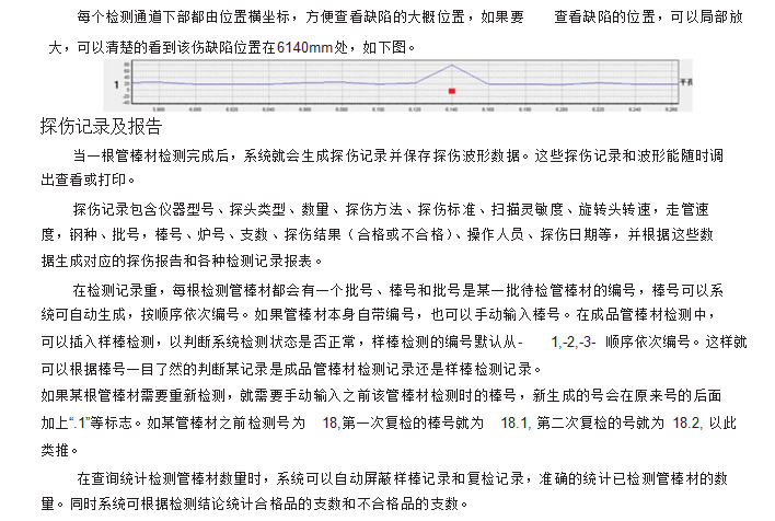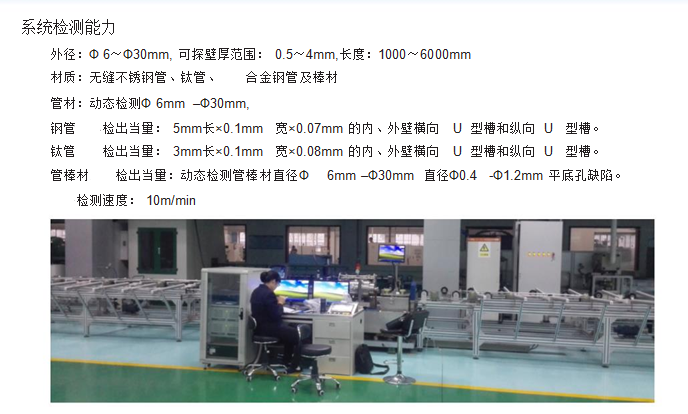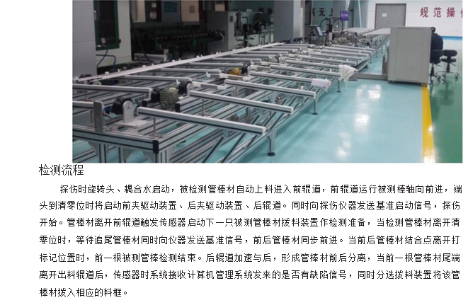 利用:龍門架將探傷主機(jī)及探頭固定,探頭位于龍門架正下方,并依附于龍門架可左右移動(dòng),被測(cè)工件通過(guò)下方的導(dǎo)輪虛轉(zhuǎn)式前進(jìn),通過(guò)調(diào)節(jié)探頭的高度及夾角可以對(duì)不同管徑及厚度的管材探傷。