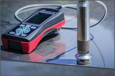 該儀器采用超聲接觸阻抗法(UCI),符合ASTM A1038標(biāo)準(zhǔn),是一種非直接測(cè)量壓痕的動(dòng)態(tài)壓入法。端部鑲有特定壓頭(如金剛石壓頭)的振動(dòng)桿受到激勵(lì)做縱向超聲振動(dòng),用一定的試驗(yàn)力將壓頭壓入試驗(yàn)表面,振動(dòng)桿的縱向振動(dòng)將受到阻抗,諧振頻率發(fā)生變化,從而得出硬度值。這種硬度測(cè)量方法已經(jīng)在各國(guó)大范圍使用,并且已經(jīng)在工業(yè)領(lǐng)域使用了50多年。