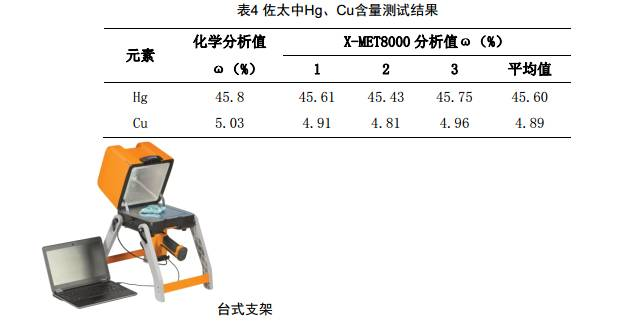 以藏藥“佐太”為例,“佐太”是藏語“仁青歐曲佐珠欽木”的簡稱,又譯“佐臺” ( 衛(wèi)藏、安多語)、“佐塔” ( 康巴語) 。“佐”是煉制,“太”指灰、粉末,意思是緞燒成灰,合為水銀煅灰,也就是在金屬汞中加以多種輔助藥物,經(jīng)過洗、浸、煮等多道復(fù)雜炮制工藝,去垢、去銹、除汞毒,然后加以多種重金屬,煅炭存性而成的水銀灰藥,謂之佐太。 通常認為,藏藥“佐太”含有8種金屬和8種礦物,這8 種金屬是金、銀、紅銅、青銅、黃銅、鐵、鉛、錫,統(tǒng)稱“能持八鐵”或稱“能持八金屬”。 利用X-MET8000儀器可以完成對佐太中重金屬的分析,表4為儀器分析值和化學(xué)分析值。
