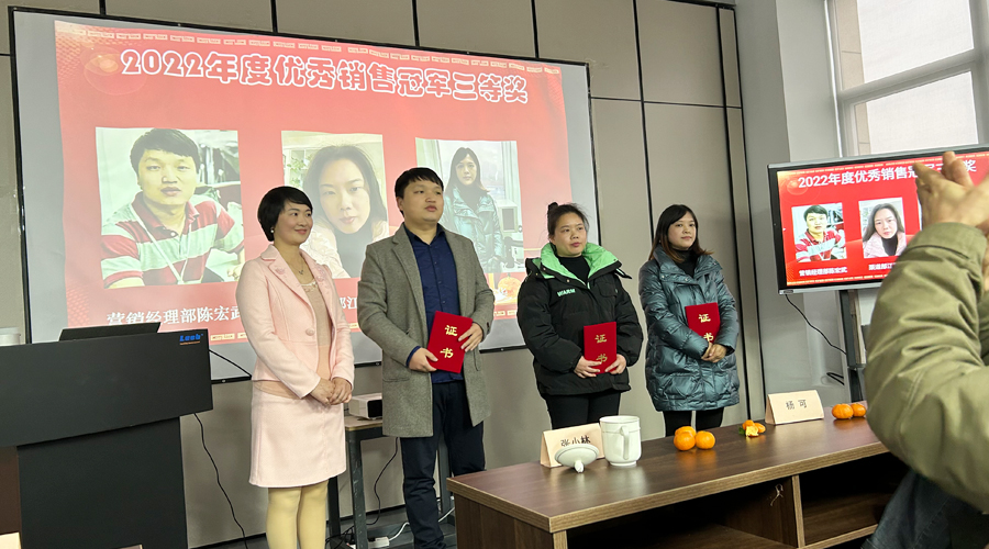 大會開始各部門負責人就2022年工作進行了總結與匯報,并對2023年的工作進行了計劃部署?;厥?022,疫情肆虐,里博人依舊堅守在自己的工作崗位上,兢兢業(yè)業(yè),即使炎炎夏日也不斷揮灑著汗水為里博辛勤付出著,任何艱難險阻都不能阻擋里博人前進的步伐。大會接近尾聲公司為各部門優(yōu)秀負責人、銷售經(jīng)理及優(yōu)秀員工等舉行了頒獎儀式。大會結束后,里博人齊聚一堂,歡聲笑語共同為2023舉杯。