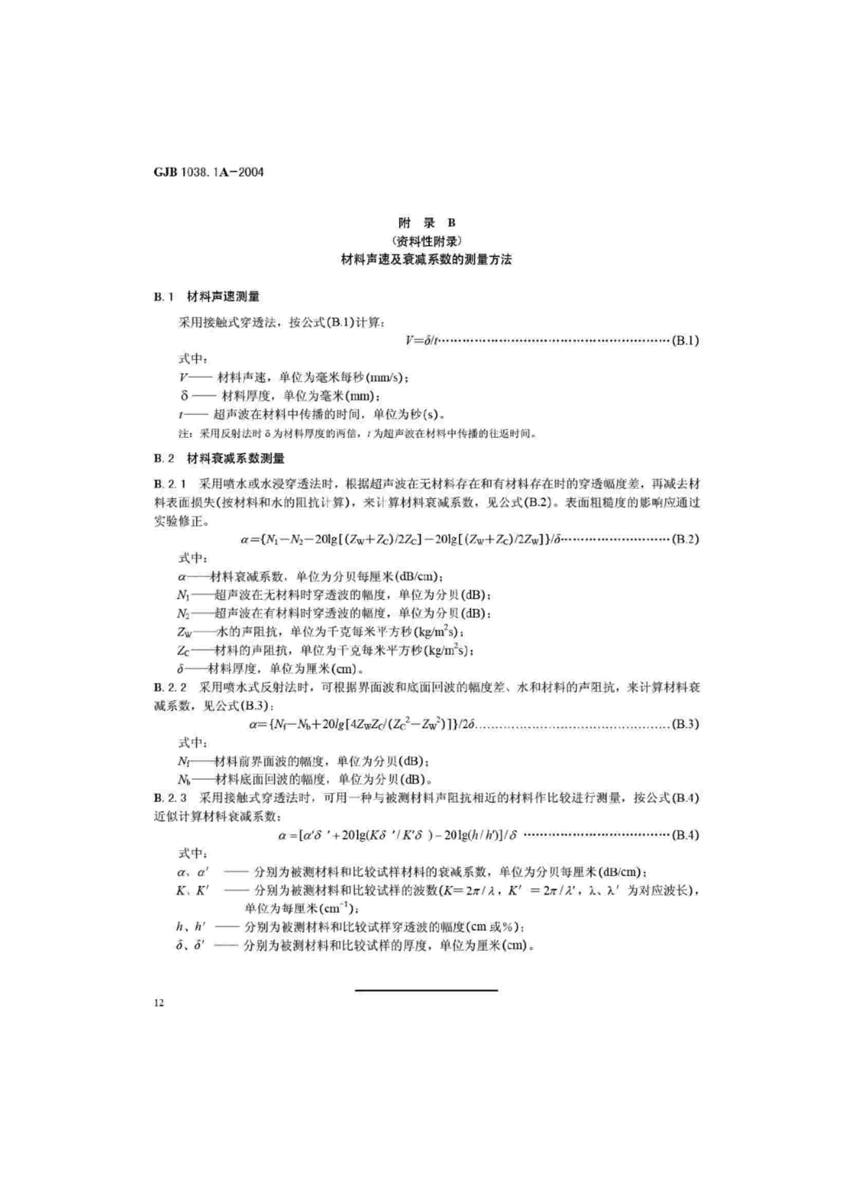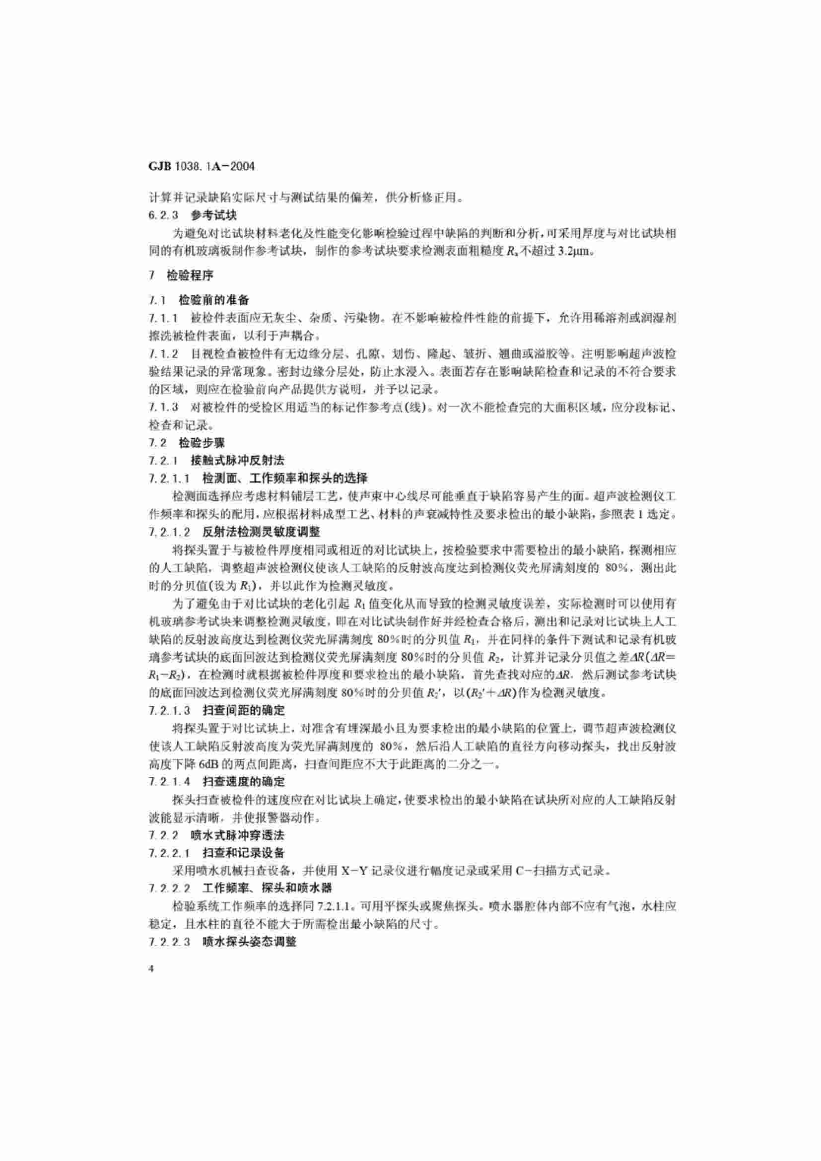 GJB 1038.1A-2004 纖維增強復(fù)合材料無損檢驗方法 第1部分 超聲波檢驗
