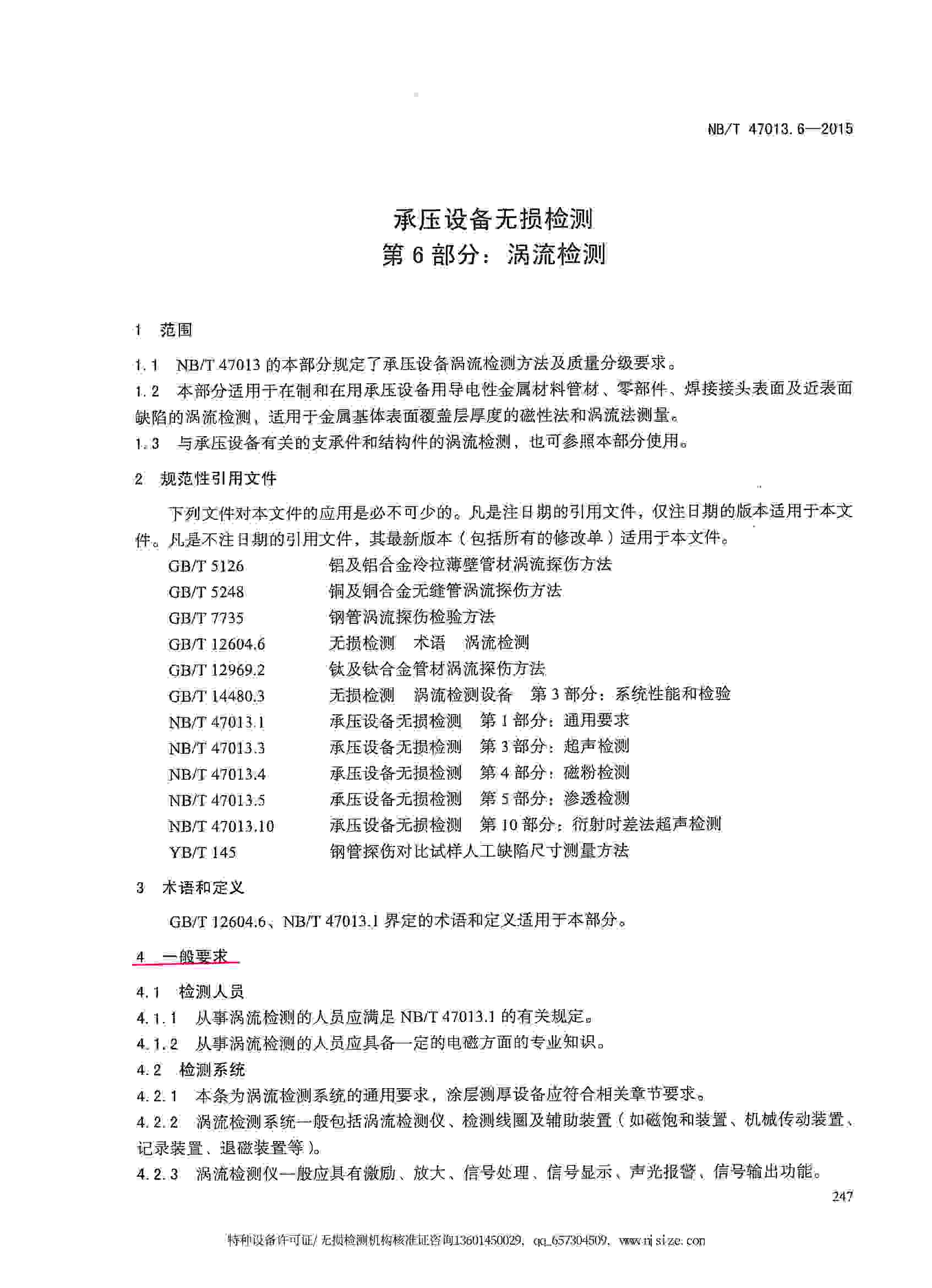 NB/T47013.6-2015 承壓設(shè)備無損檢測 第6部分:渦流檢測