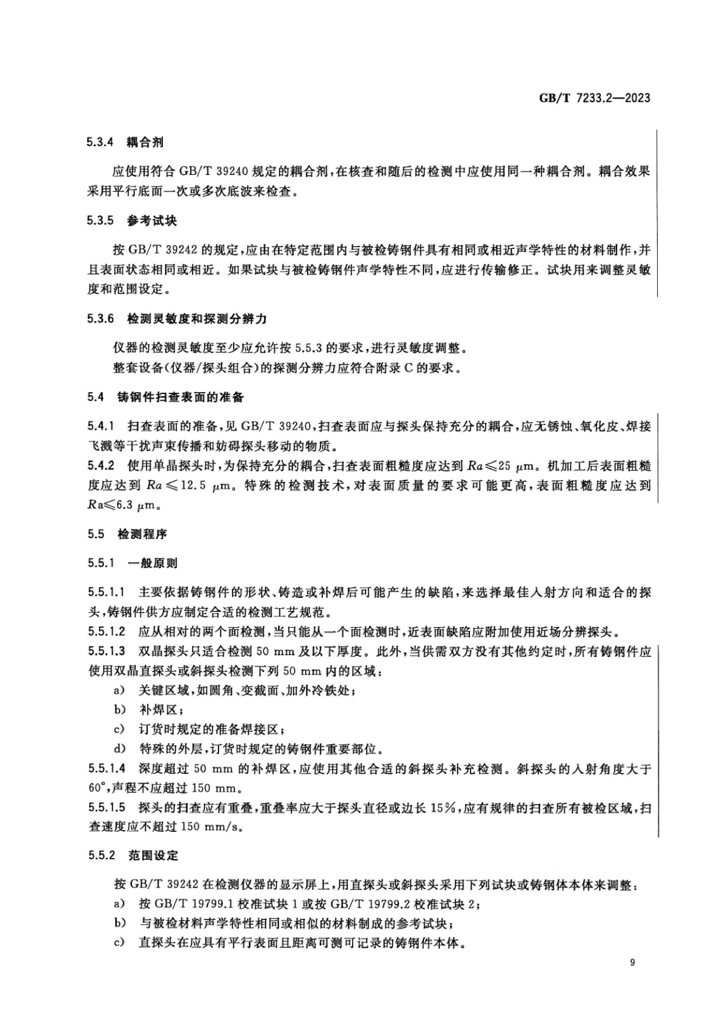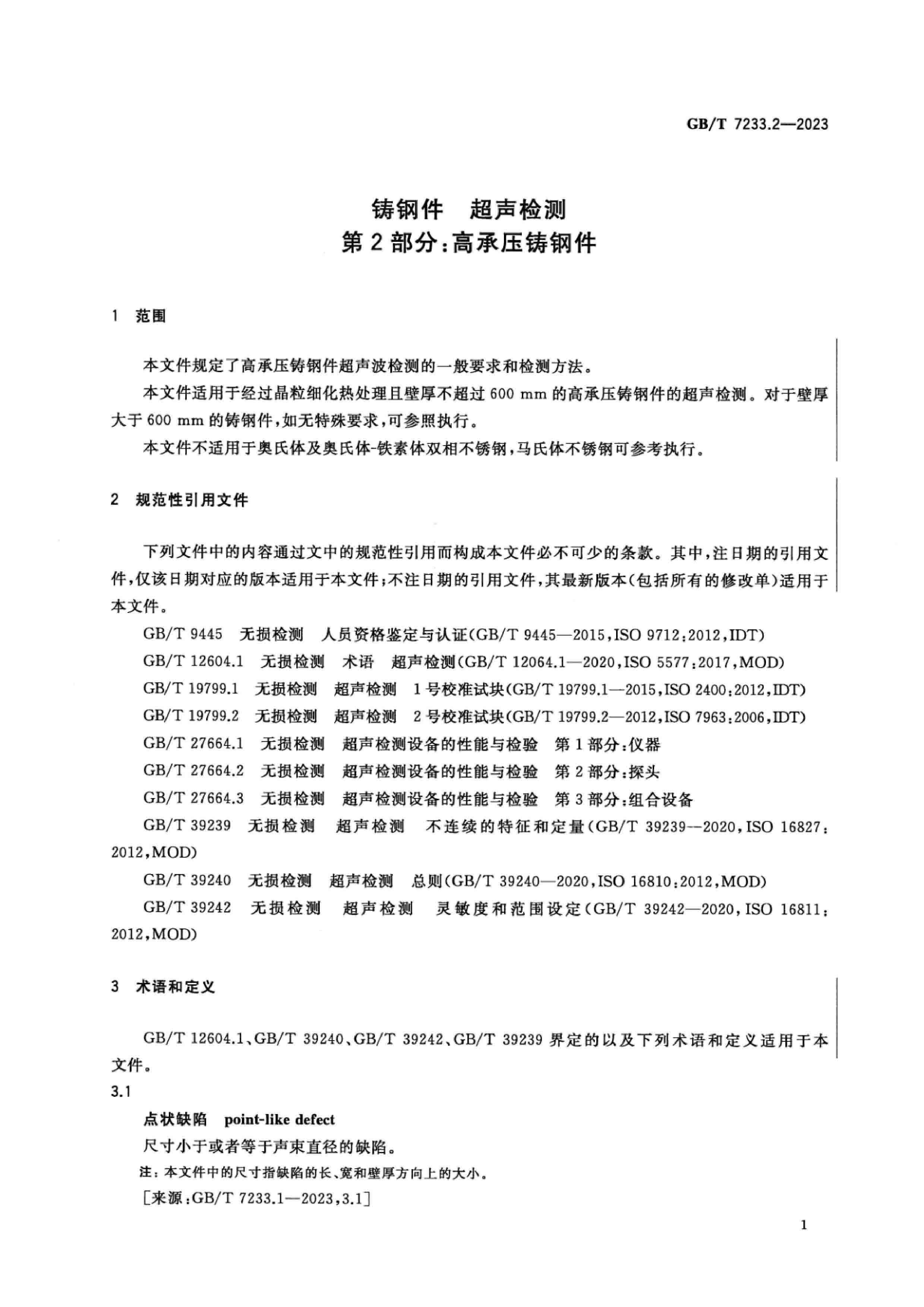 GBT 7233.2-2023 鑄鋼件 超聲檢測(cè) 第2部分:高承壓鑄鋼件