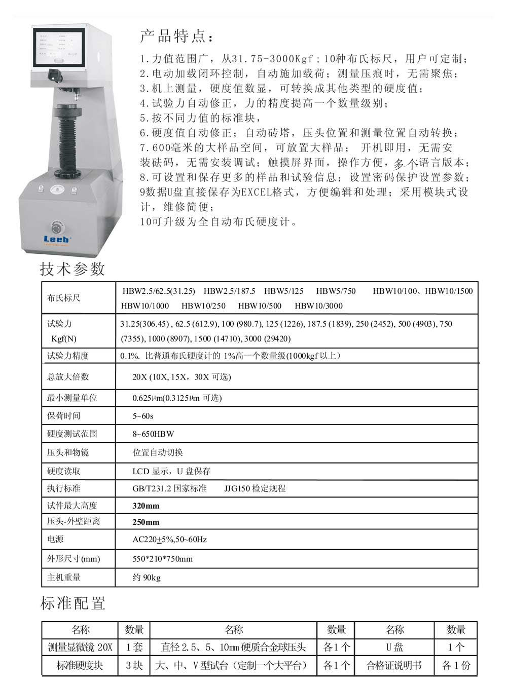 ● 力值大,從31.75-3000kgf,10種布氏標尺,用戶可定制;
